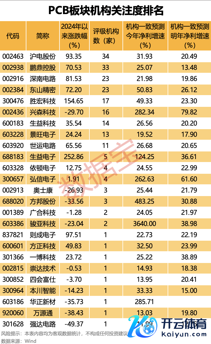从改日成长性来看,沪电股份、东山精密、胜宏科技、生益科技等个股机构一致预测今明两年净利增速均超20%体育游戏app平台,兴森科技、生益电子、弘信电子、方邦股份等机构一致预测今明两年净利增速均超30%。